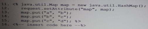 Which three EL expressions, inserted at line 16, are valid and evaluate to "d"? (Choose three)