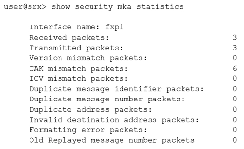 While configuring the SRX345, you review the MACsec connection between devices and note that it is not working.