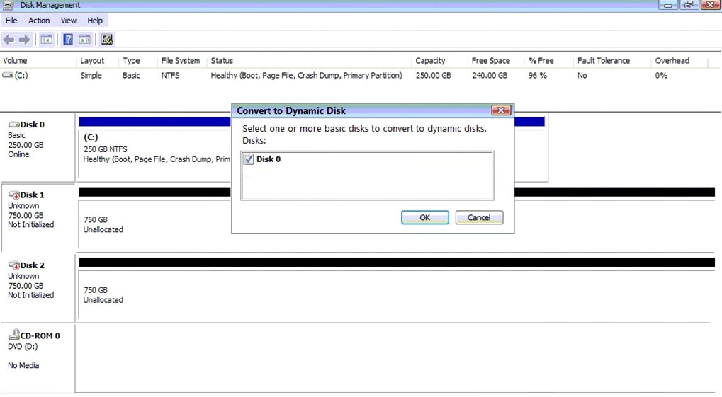 ✑ Again, right click on disk 1 and choose convert to dynamic disk.