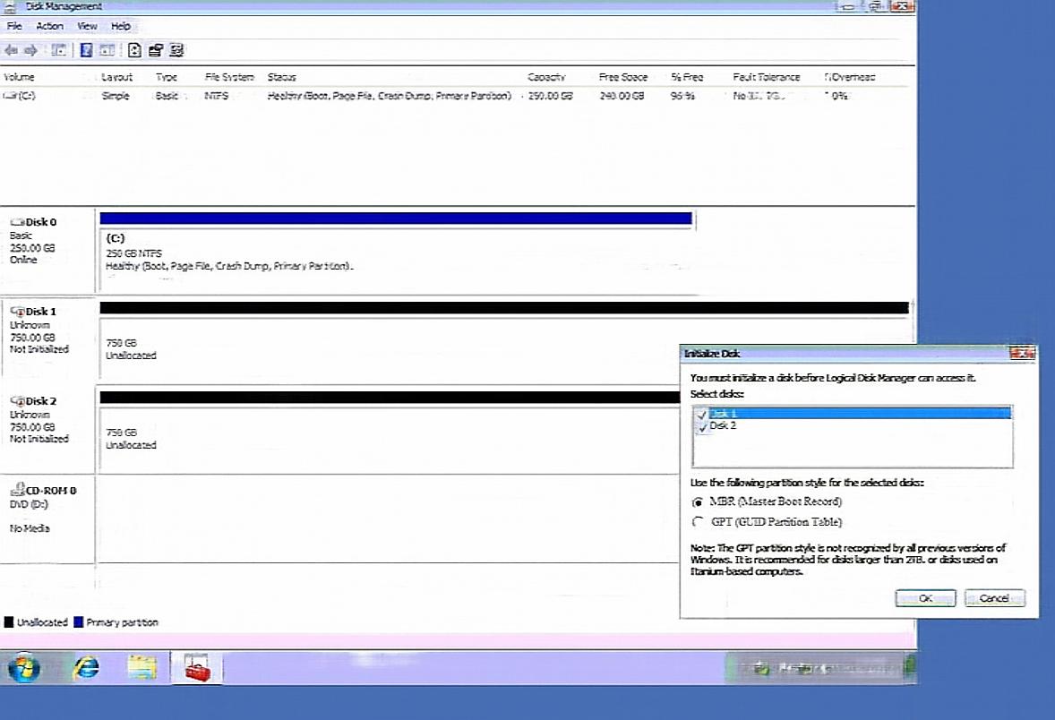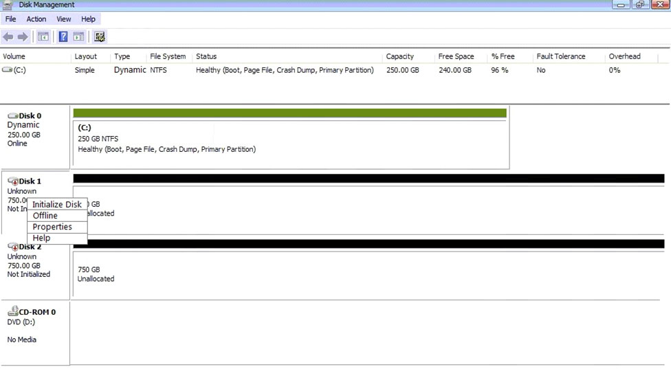 ✑ Right click on disk 1, click on initialize
