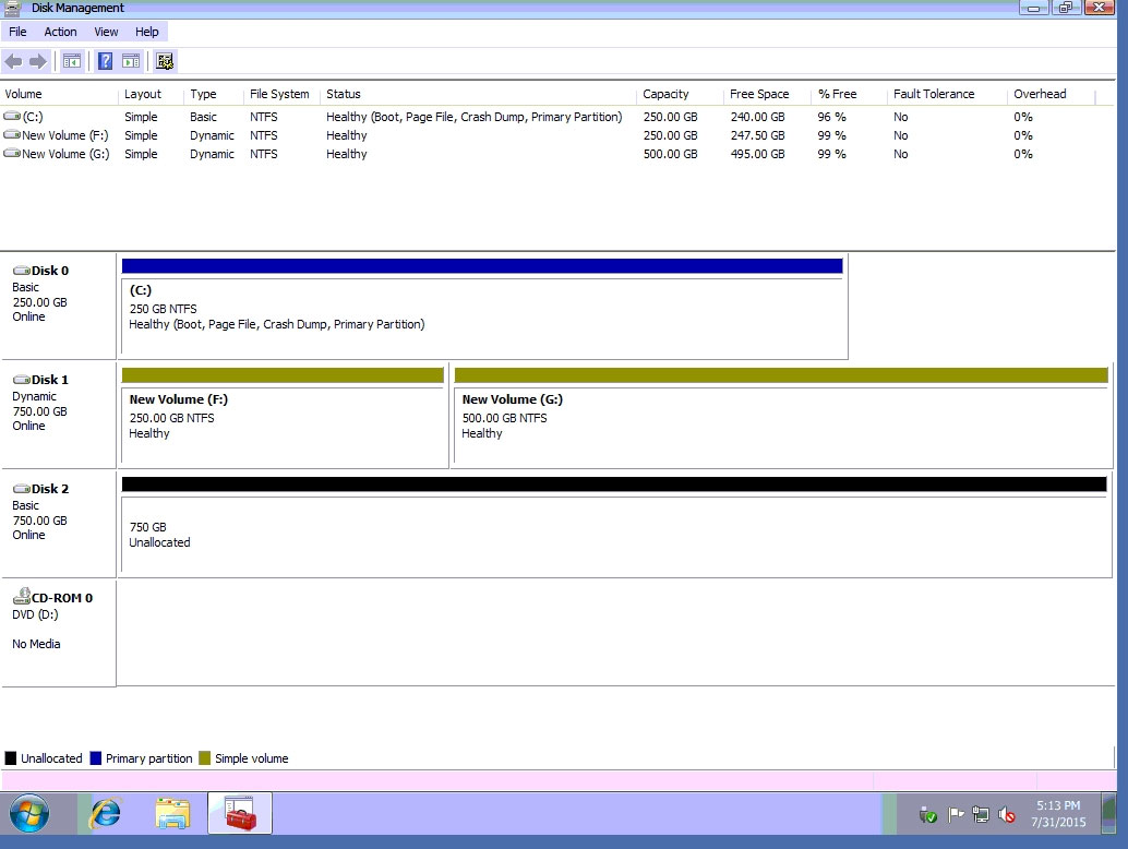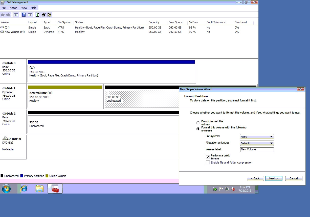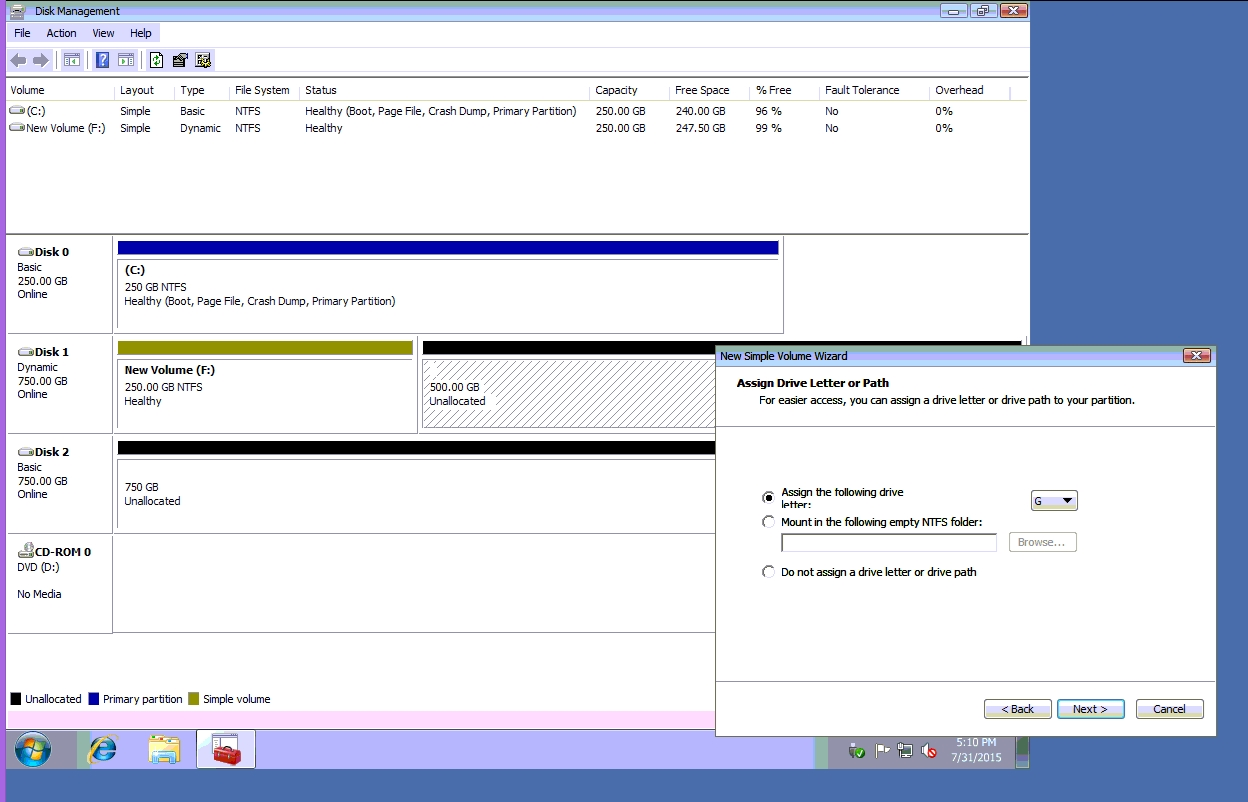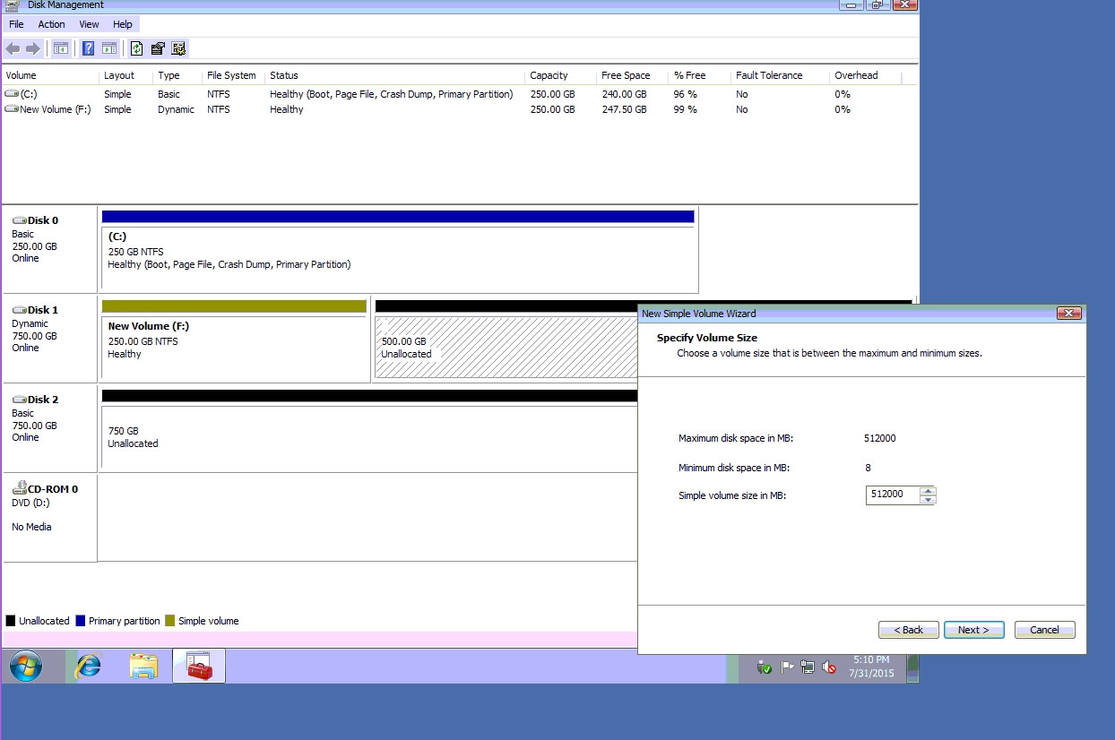 ✑ Do the same thing for rest of space of disk 1, assigning 512000MB and using Disc G