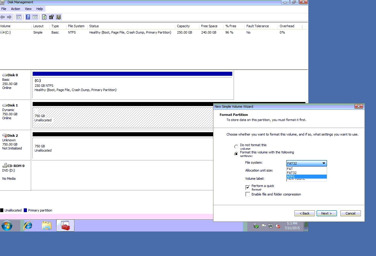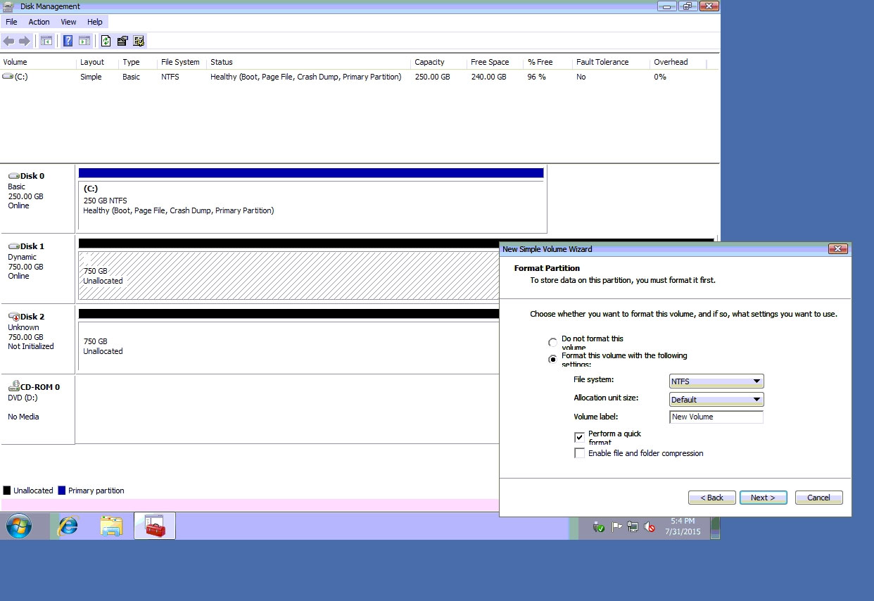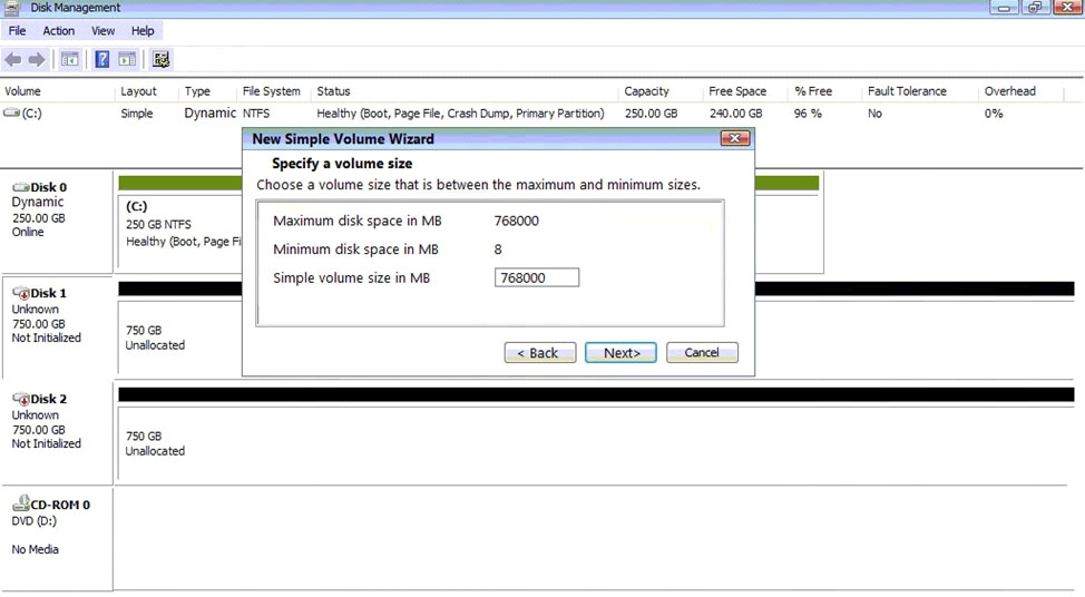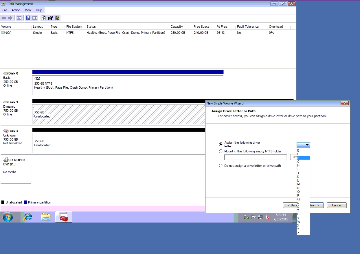 ✑ Do the same thing for rest of space of disk 1, assigning 512000MB and using Disc G