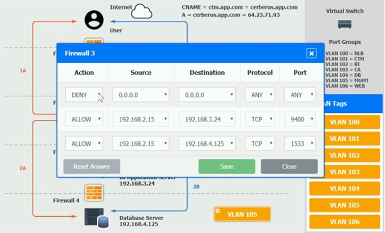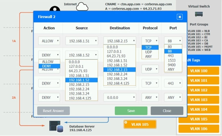 Verify and appropriately configure the VLAN assignments and ACLs. Drag and drop the appropriate VLANs to each tier from the VLAN Tags table. Click on each