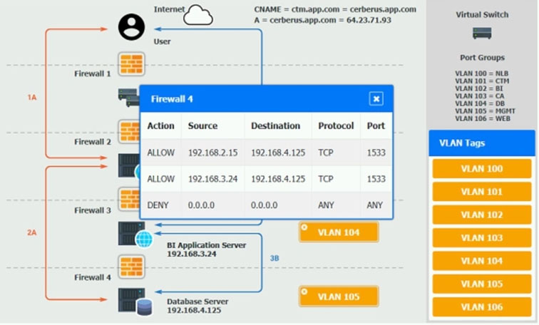 3B "" The BI application server gets the data from the database server and presents it to the CTM application server.