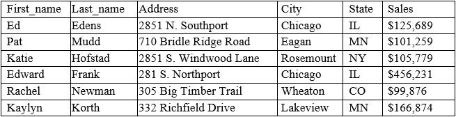 A customer list from a financial services company is shown below: